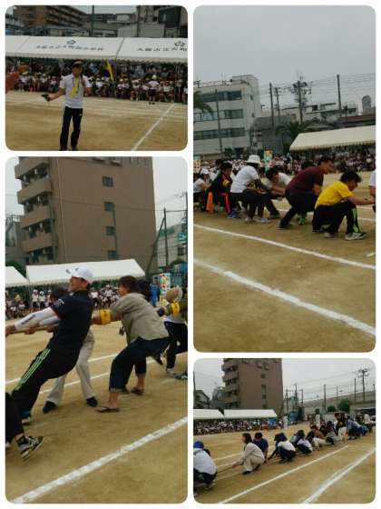 教職員・PTA 競技の「今日の敵は、明日の友」の様子です。