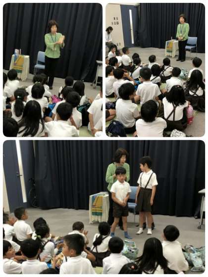 まず館内を見学し、その後はスタッフの方に説明や読み聞かせをしていただきました。
