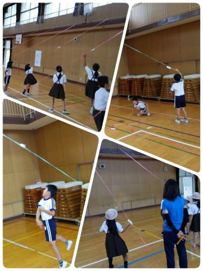 また、お互いに投げ方を教えあう様子も見られ、よい練習ができました。