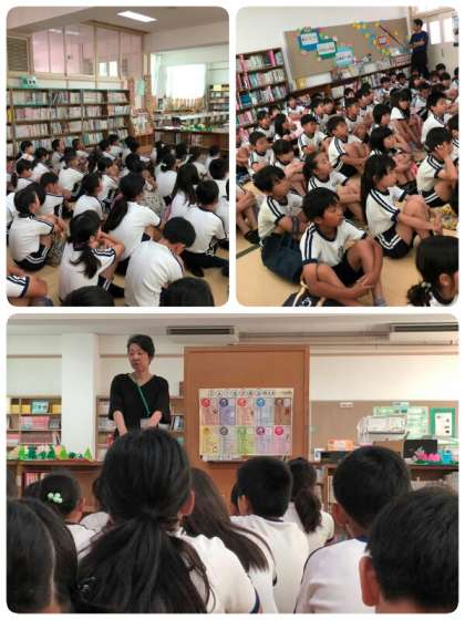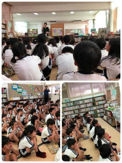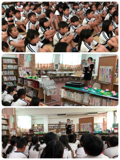 4年生は2時間目に、図書館補助員の方(北山さん)から、図書室での過ごし方についての説明と、紙芝居の読み聞かせをしていただきました。