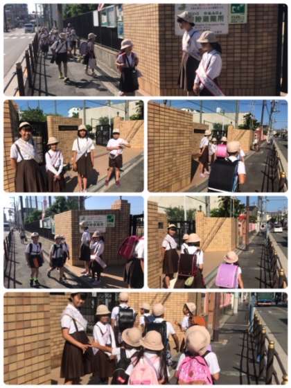 今日も、登校時のあいさつ運動を頑張っています。青空と同じくらい気持ちのいいあいさつが交わされています。