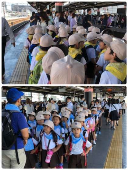西九条駅に着きました。混んでるホームでも整列乗車を守ります。