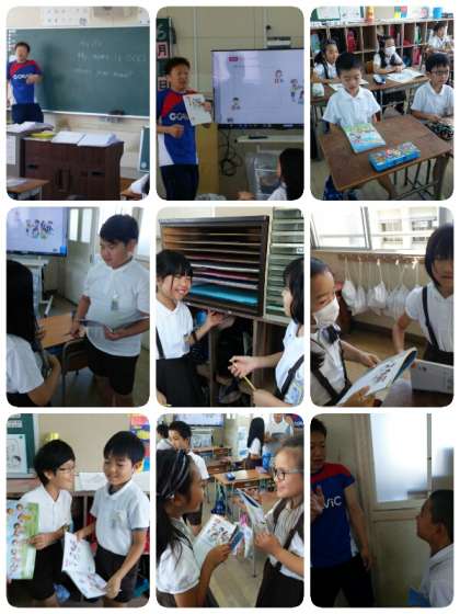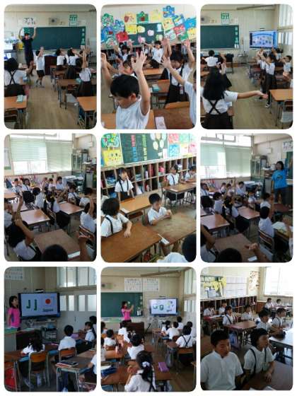 低中学年は、とても楽しく歌っていました。またペアを探して、自己紹介していました。
