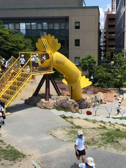 食事の後は、再び運動です。広い公園を縦横無尽に走り回っています。