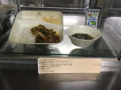 和風カレーどんぶり、もずくとオクラのとろり汁、和梨、牛乳