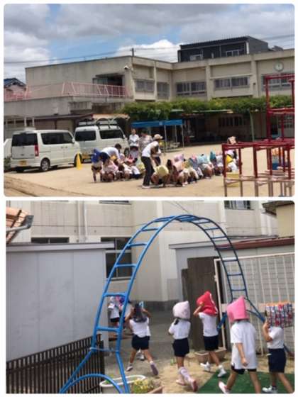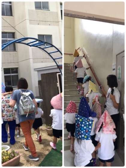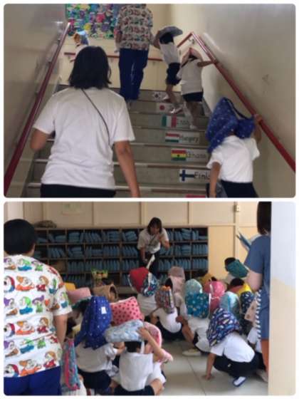 17日大和田幼稚園が地震、津波の避難訓練を行いました。園庭に避難した後、津波に備えて、小学校の4階へ避難しました。小さい子たちもしっかり階段をのぼり、静かに速やかに避難できていました。
