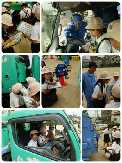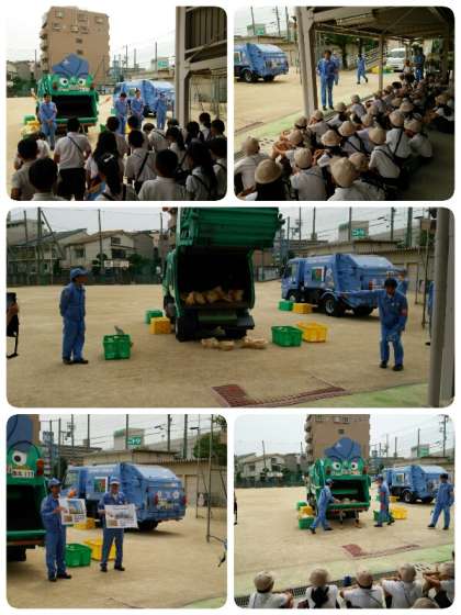 まず、2時間目はクラスごとにパッカー車の乗車体験やクイズラリーに挑戦したり、紙芝居の読み聞かせをしていただいたりしました。