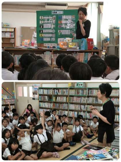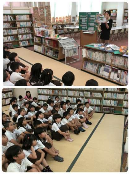 5年生同様に、図書館補助員の北山さんに本の分類について教えていただきました。紙芝居も読んでもらいました。