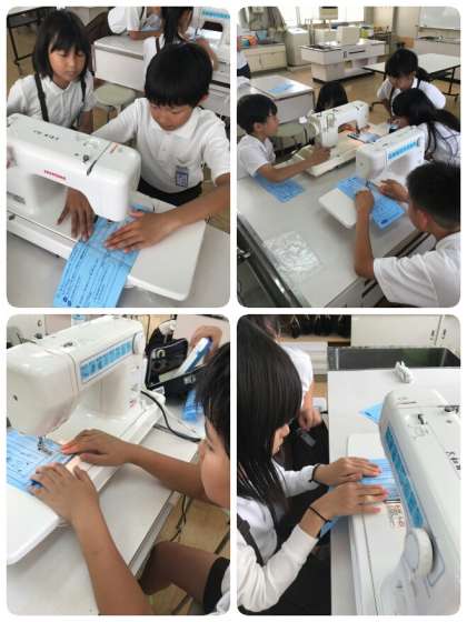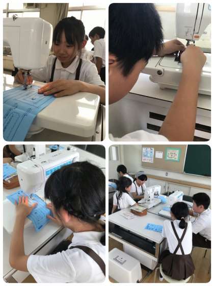 すぐには、なかなか思うようにうまくいきませんが、班の友達と協力しながらのミシン縫いでした。