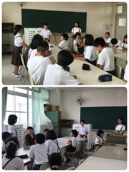 今日は、先日のあいさつ週間の反省と夏休みに向けてのポスター作りをしました。