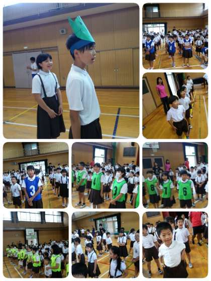 音楽が専門の校長先生が講師となって、体を使って音を奏でるボディパーカッションや、歌声を重ねていく「わん にゃー ぶーぶー こけこっこー」のボイスアンサンブルを全校児童でしました。