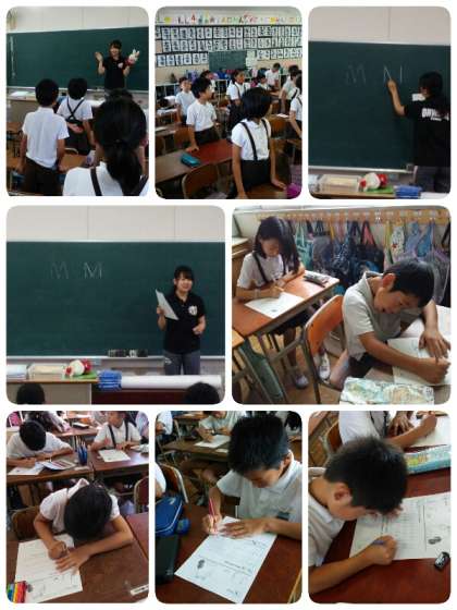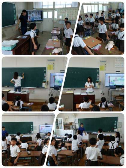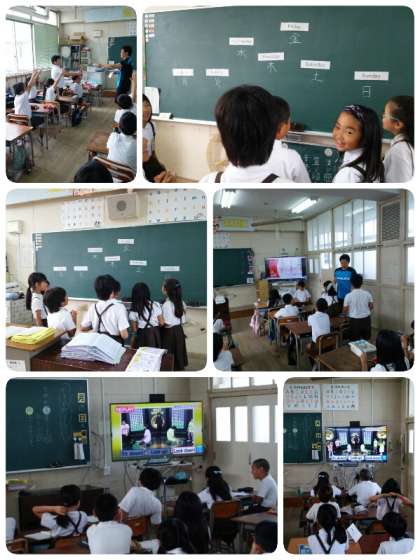 アルファベットや単語を真剣に書く様子、体を動かして楽しく歌う様子、大きな声・はっきりとした発声でカードを読む様子、積極的にゲームに参加する様子など、各学級で様々な活動の様子が見られました。
