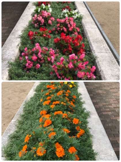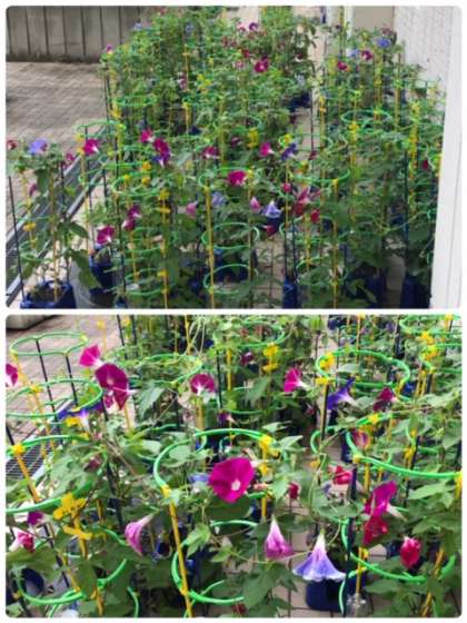 朝顔やマリーゴールドなど、美しい花をたくさん咲かしています。
