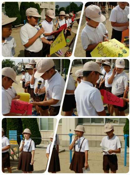 朝会では、まず校長先生から、土曜参観の頑張りについて、昨日の夢カーニバルについて、1学期のまとめについて3点お話していただきました。