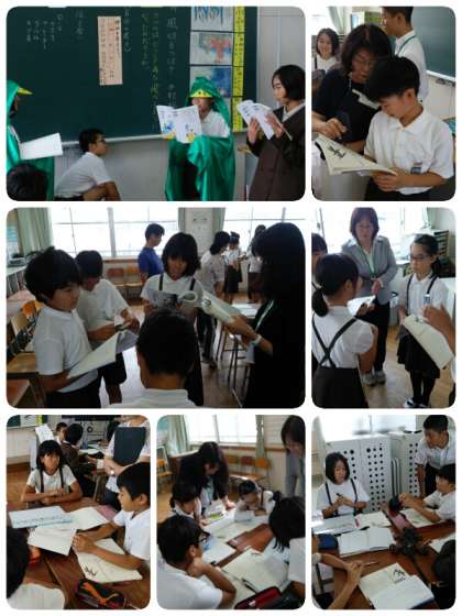 5時間目に、6年生において国語科「人物と人物との関係を考えてまとめたものでブックトークをしよう(教材名「風切るつばさ」)」の研究授業を行いました。