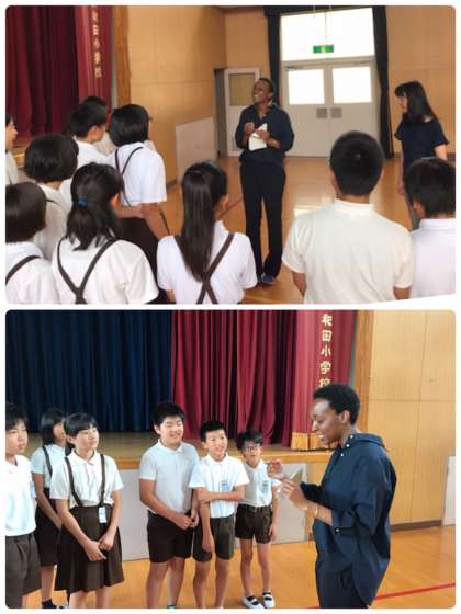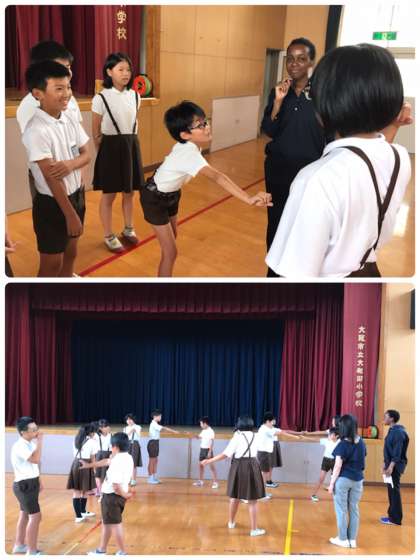 いつもとは違う方も映っています。音楽集会では、校長先生がスペシャルゲストで登場されていますが、今回はC-netのテニー先生がいらっしゃいます。