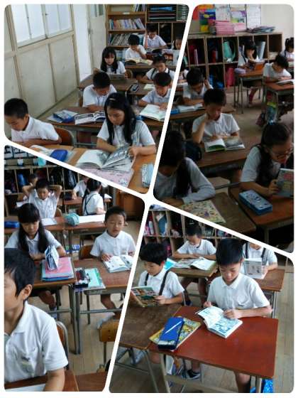 外はあいにくの雨模様ですが、子どもたちは、教室で心落ち着け、読書タイムです。