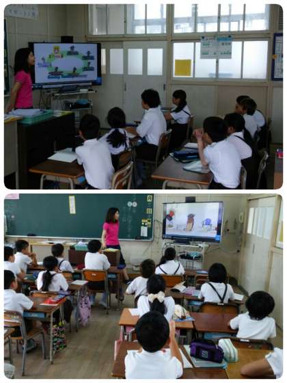 あいにくのお天気ですが、英語の歌を聞いて、元気よく歌ったり、体を動かしたりするクラスが多いです。
