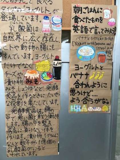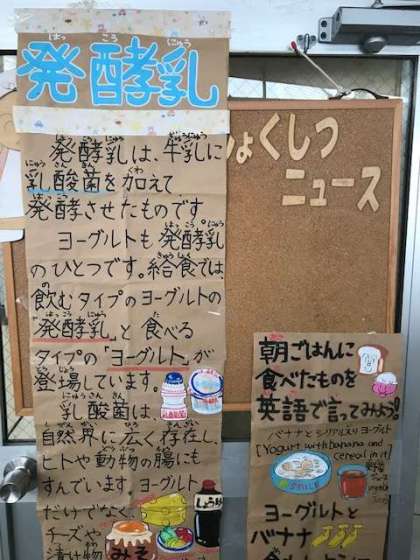 ポークトマトスパゲティに発酵乳、子どもたちに人気のメニューです。美味しくいただきます。