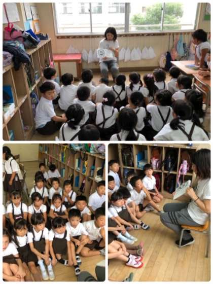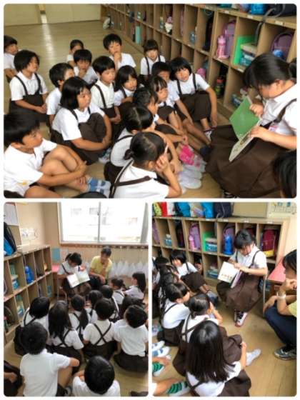 1学期最後の読書タイムです。今学期もいろいろな読書の取り組みがありました。1年生では、小さな先生も登場です。また、2年生では、国語科の学習に合わせた読み聞かせをしています。