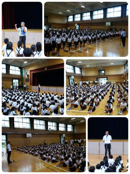 次に、生活指導の先生から夏休み中に守ってほしいことについて3つのお話がありました。