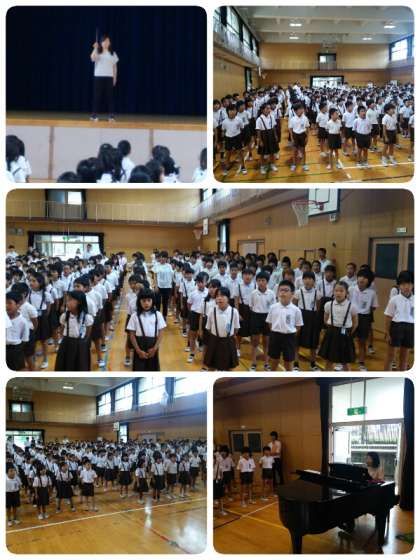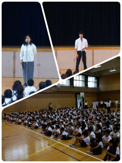 まず、校長先生から夏休み中の学校行事についてお話していただきました。