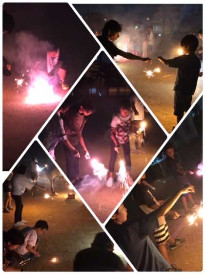 芝生から見る打ち上げ花火に、歓声も上がりました。