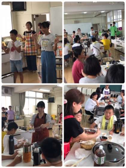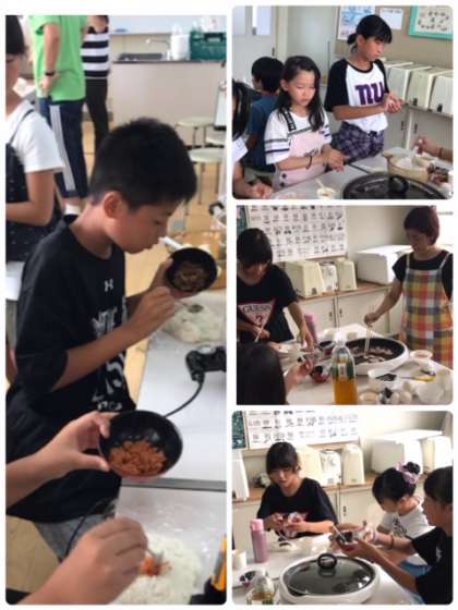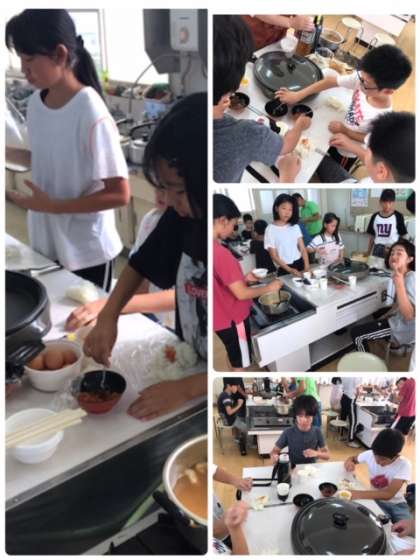 朝ごはんは、各自でおにぎりを作り食べました。おかずの卵、ウインナーも好きに焼いて食べました。いい顔で美味しく食べています。