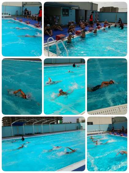クロール、平泳ぎともに50メートルを泳ぎ切る、またタイム更新を目標に泳ぎました。