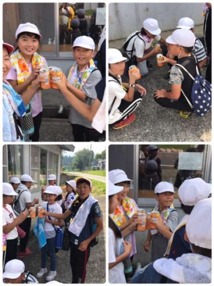 全員無事登山した後は、よく冷えたオレンジジュースをいただきました。がんばった自分へのご褒美です。