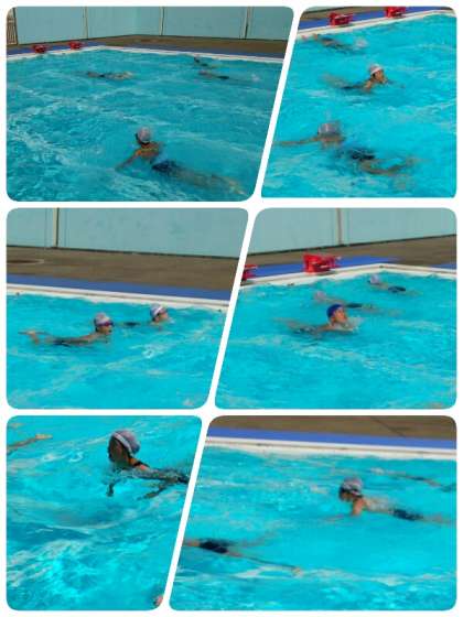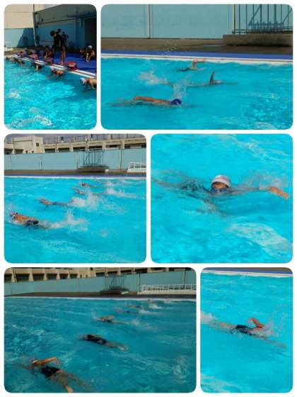 クロール、平泳ぎともに50メートルを泳ぎ切る、またタイム更新を目標に泳ぎました。