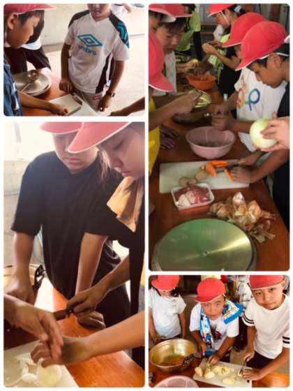 ご主人に、作り方を教えていただき、飯ごう炊飯のスタートです。