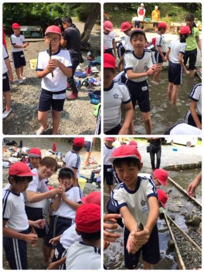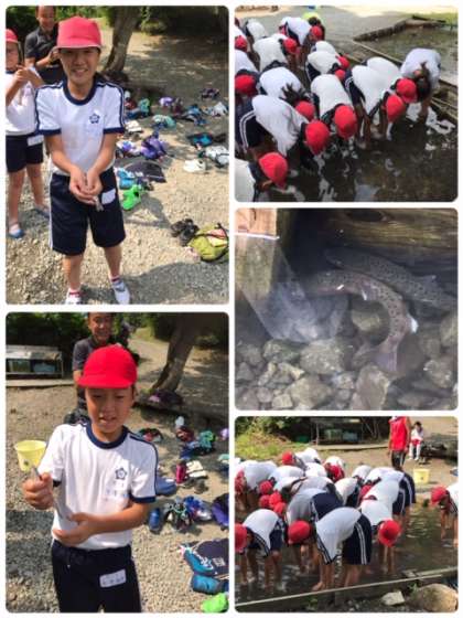 冷たい水に、きゃーきゃー言いながら、ヌルヌルする魚つかみにチャレンジしました。