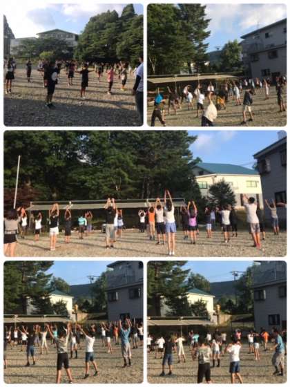 ラジオ体操で身体を起こし、今日の予定やめあてを確認しました。