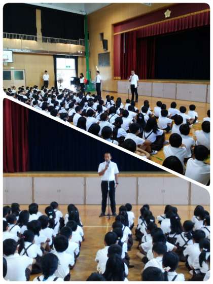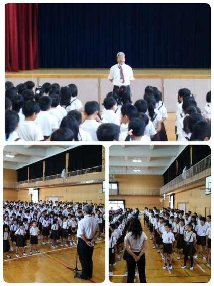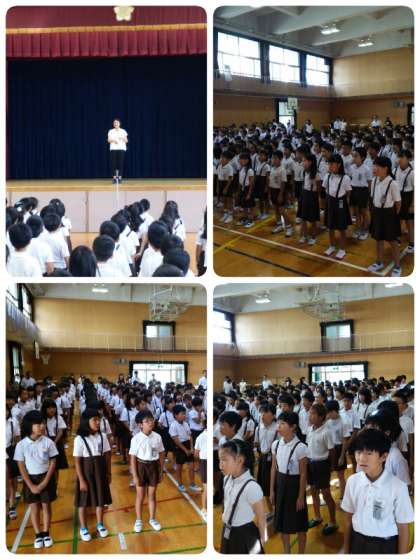 まず、校長先生から夏休み中に学校であったことについてお話していただきました。