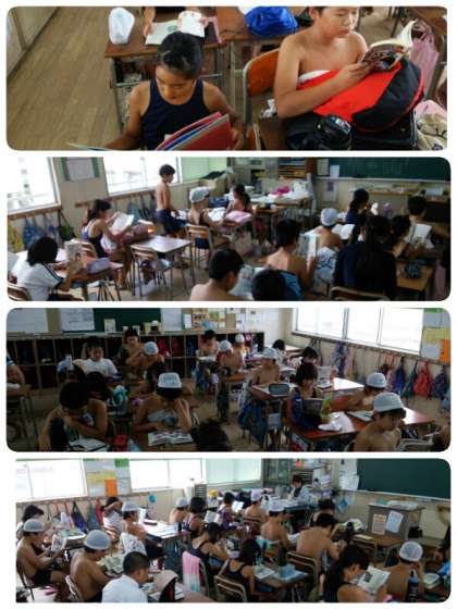 雨上がりで蒸し暑いですが、子どもたちは、教室で心落ち着け、2学期最初の読書タイムです。