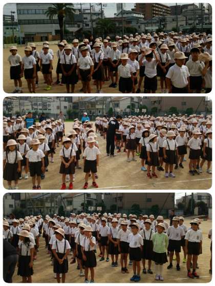 朝会では、まず校長先生から、土曜授業参観での頑張りについて、また今週は晴れの日が続くという天気予報が出ていて暑い日が続くので水分補給をこまめにしましょうとお話していただきました。