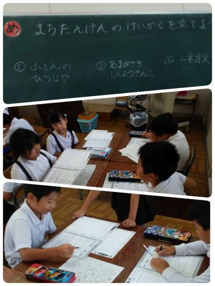 3時間目に2年2組では、9月24日(火)の町たんけん本番に向けて計画を立てました。