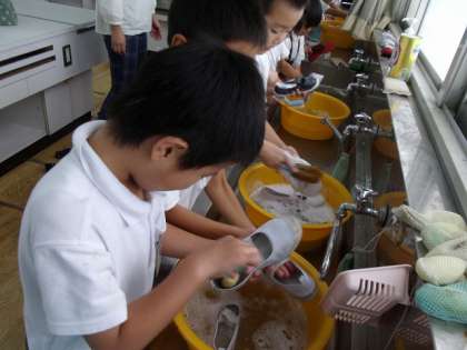 生活科の学習で、1年生は学校で家の仕事にチャレンジしました!