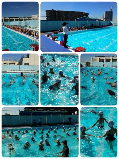 どの学年の子どもたちも、学年や自分の目標に向かってプール水泳の学習をよく頑張りました。