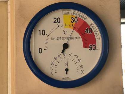 保健室前の風通しの良い陰でさえ、この気温と湿度。