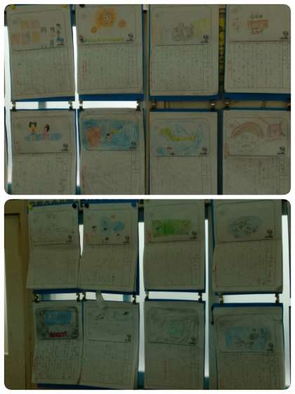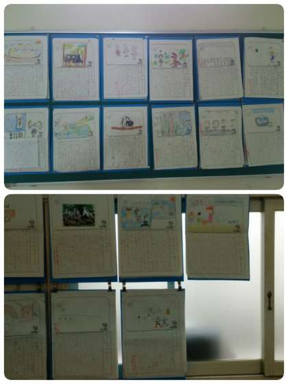 教室や階段の掲示板には夏休みの思い出を記事にした夏休み新聞が掲示されていました。