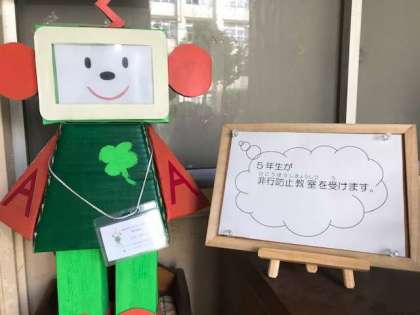 今日は5年生が、非行防止教室の出前授業を受けます。