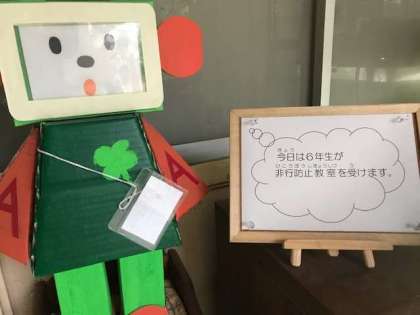 この前は5年生。今日は6年生が非行防止教室の出前授業を受けます。内容は5年生とは異なる内容だそうです。