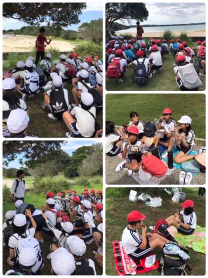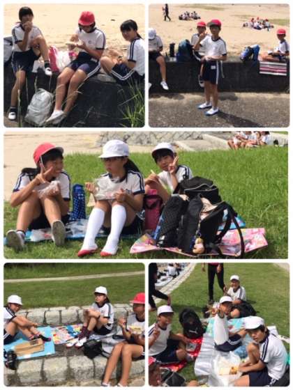 シーカヤック用に体操服に着替えて、みんなでお弁当タイム!