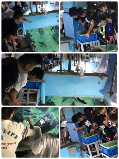 2クラスに分かれて、バックヤードでの餌やり体験をしました。