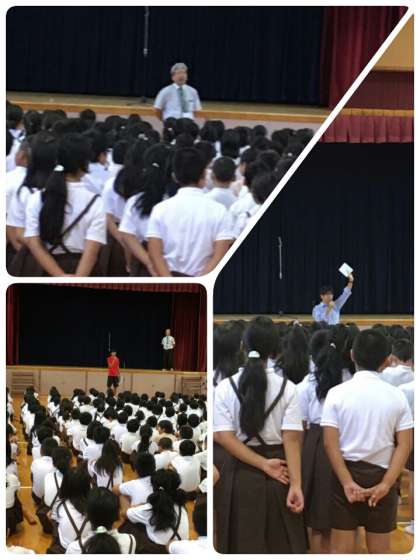 まず、校長先生から先週の木・金曜日に行われた6年生の修学旅行についてお話をしていただきました。