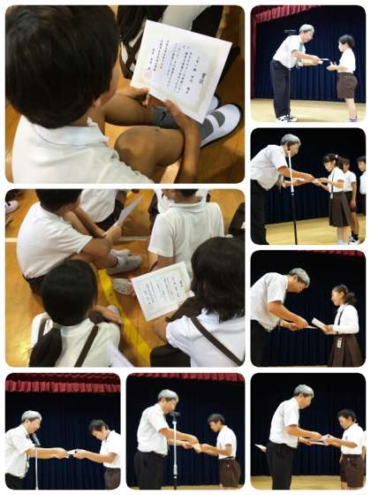次に1・2学期の水泳学習の表彰がありました。各学年で設定した目標を達成した児童が表彰されました。