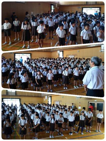 まず、校長先生が先週末のラグビーワールドカップの日本対アイルランド戦について、日本が大金星を挙げたことをお話されました。
