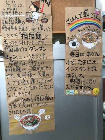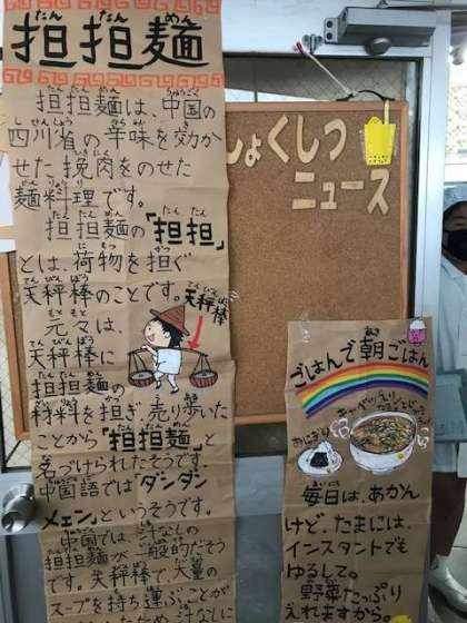 です。ちょっぴり辛味のある担々麺、子どもたちにも人気です。あわてずよくかんで美味しくいただきます。